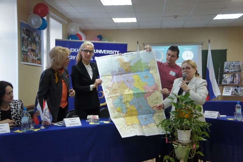 Каждый из гостей рассказал о своём личном опыте взаимодействия с Германией и людьми, проживающими в этой стране. Участвовавшие во встрече студенты не только с интересом выслушали рассказы приглашённых гостей, но и задали им много вопросов: Как относится молодёжь Германии к молодёжи в России? Нужны ли в наше время границы между государствами? Как влияют миграционные процессы на политическую ситуацию в мире? Почему упал интерес к изучению немецкого языка в последние годы? Как можно поехать в Германию и познакомиться с этой интересной страной?
