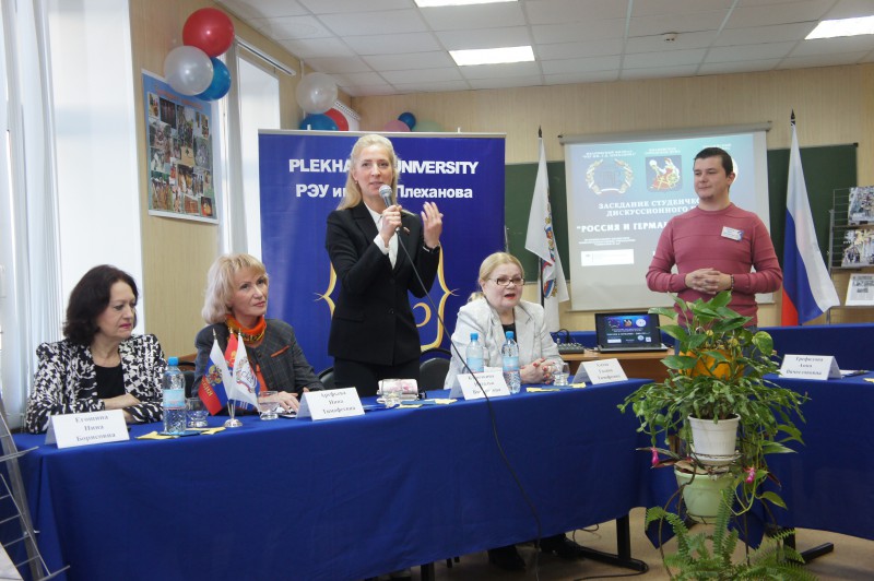 Версия для печати7 декабря 2015 года в 14.00 в Ивановском филиале РЭУ им. Г.В. Плеханова депутат Ивановской городской Думы Наталья Курочкина приняла участие в заседании студенческого дискуссионного клуба на тему: «Россия и Германия - вместе?...».