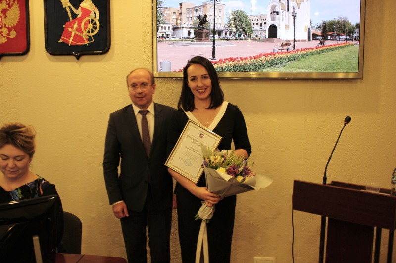 Александр Кузьмичев поблагодарил депутата Марину Троицкую за создание и проведение конкурса «Инглишмания», за большой вклад в организацию совершенствования учебного и воспитательного процессов и популяризацию иностранных языков Марина Владимировна была награждена благодарственным письмом Ивановской городской Думы.