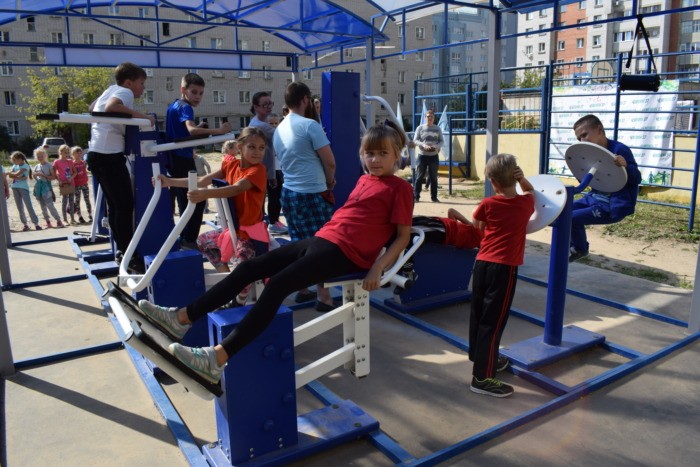 В одном из дворов областного центра появилась спортивная площадка с современным комплексом уличных тренажеров