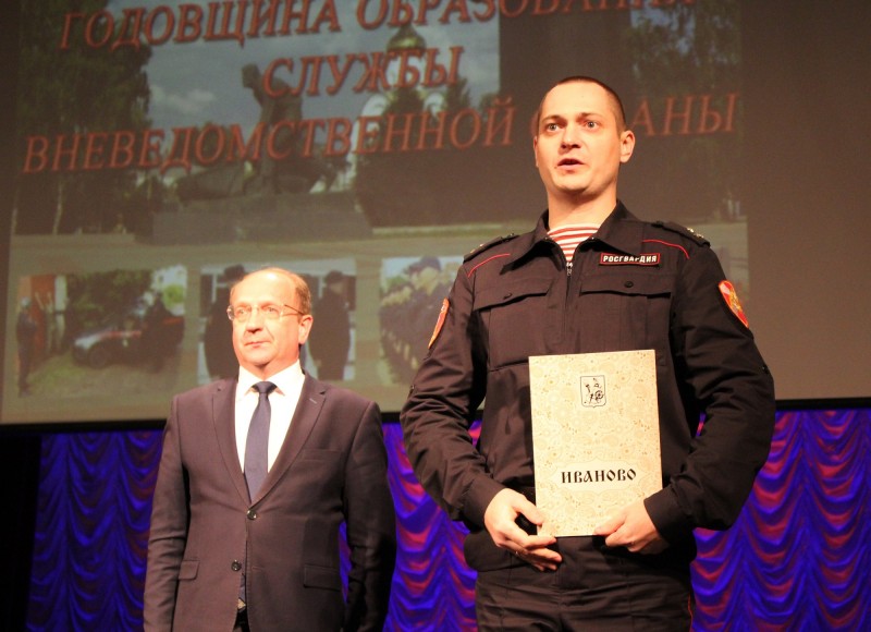 За высокие показатели в службе и образцовое исполнение служебных обязанностей Александр Кузьмичев вручил благодарности Ивановской городской Думы сотрудникам службы вневедомственной охраны.