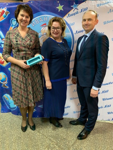 Депутат Ивановской городской Думы Елена Рясина и представитель «Регионального оператора по обращению с ТКО» Дмитрий Скрицкий вручили подарки за активное участие в экологической акции.