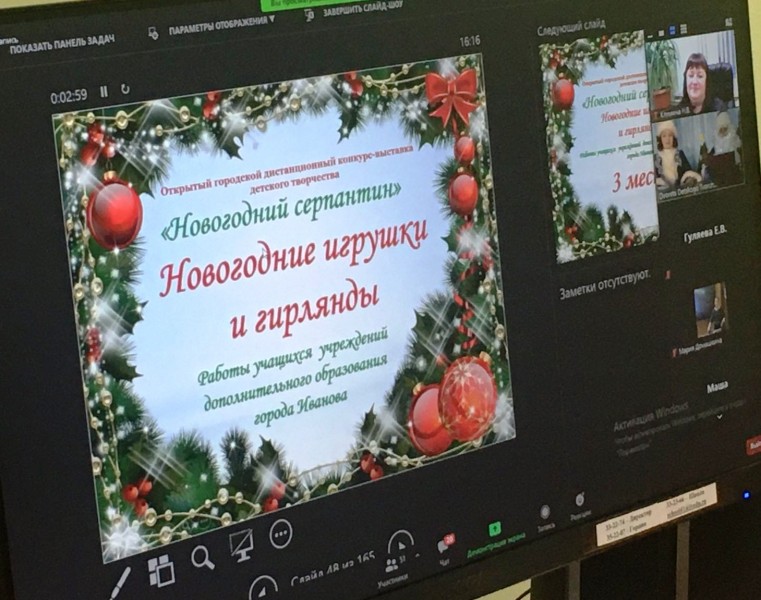 В этом году конкурс впервые проводился в дистанционном формате. На конкурс из 28 школ и 7 учреждений дополнительного образования было прислано более 450 работ, и познакомиться с ними можно на виртуальной экспозиции, размещённой на сайте Дворца творчества http://dvorec37.ru/index.php/2908-vystavka-novogodnij-serpantin-2.