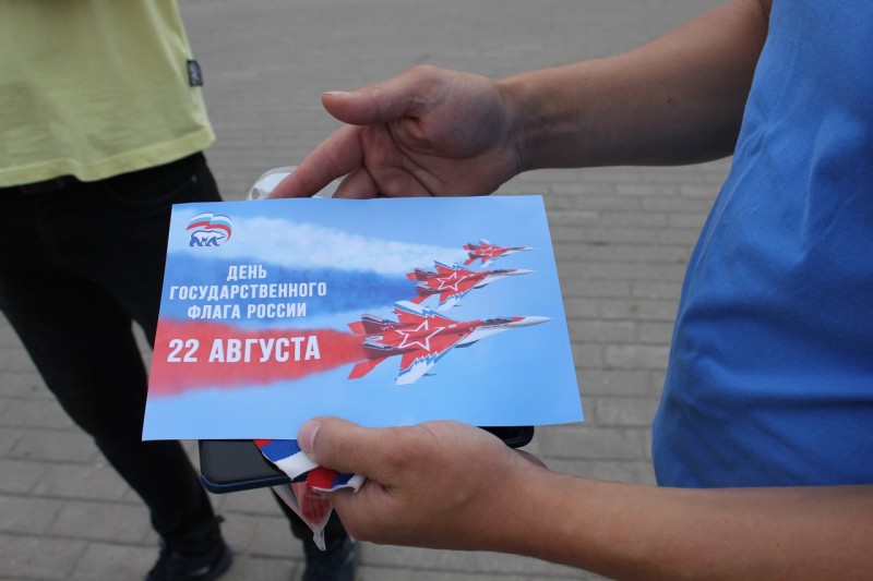 Также на площади Пушкина прошла акция по раздаче прохожим ленточки триколор. Волонтеры рассказывали историю государственного флага России. Также для всех желающих у фонтана была организована фотозона.
