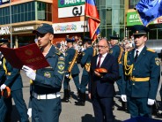 Торжественное мероприятие завершилось ярким выступлением духового оркестра, ансамбля барабанщиц и роты почетного караула.