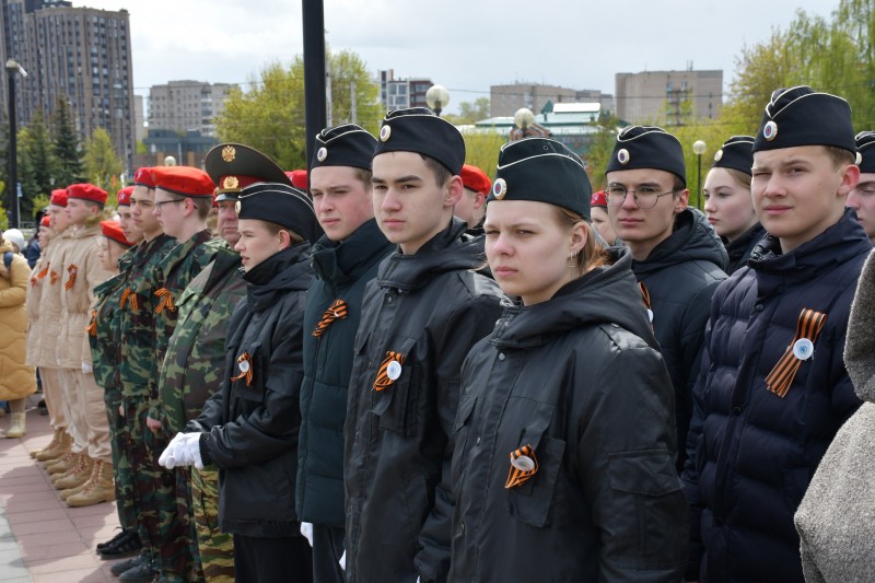 Вместе с этим на площади у бывшего кинотеатра «Современник» прошло торжественное построение военно-патриотических отрядов образовательных учреждений областного центра. Ребята активно участвуют в важных городских событиях, изучают историю нашей страны и трепетно сохраняют наследие Великой Победы. В этот значимый для всей нашей страны день Председатель Ивановской городской Думы Александр Кузьмичев и его заместитель Галина Бочкова вручили лучшим военно-патриотическим отрядам, победителям городского конкурса «Равнение на мужество» награды.