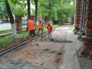 На сегодняшний день подрядная организация уже подготовила щебеночное покрытие под асфальтирование, выполнила установку бордюрного камня и провела частичное асфальтирование территории.