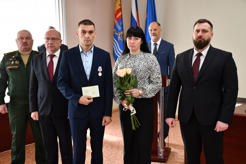 Двум бойцам, участникам Специальной военной операции, Александру Валерьевичу Чистянскому и Денису Сергеевичу Смирнову были торжественно вручены медали «За отвагу».
