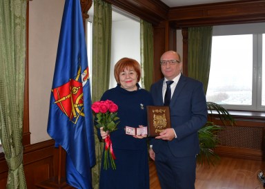 Версия для печати12 декабря Председатель Ивановской городской Думы Александр Кузьмичев вручил Знак «Общественное признание» директору ЗАО «Одежда и мода» Нине Викторовне Кауровой
